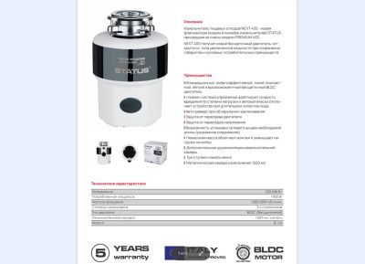 Новинка Status - измельчитель пищевых отходов NEXT 400