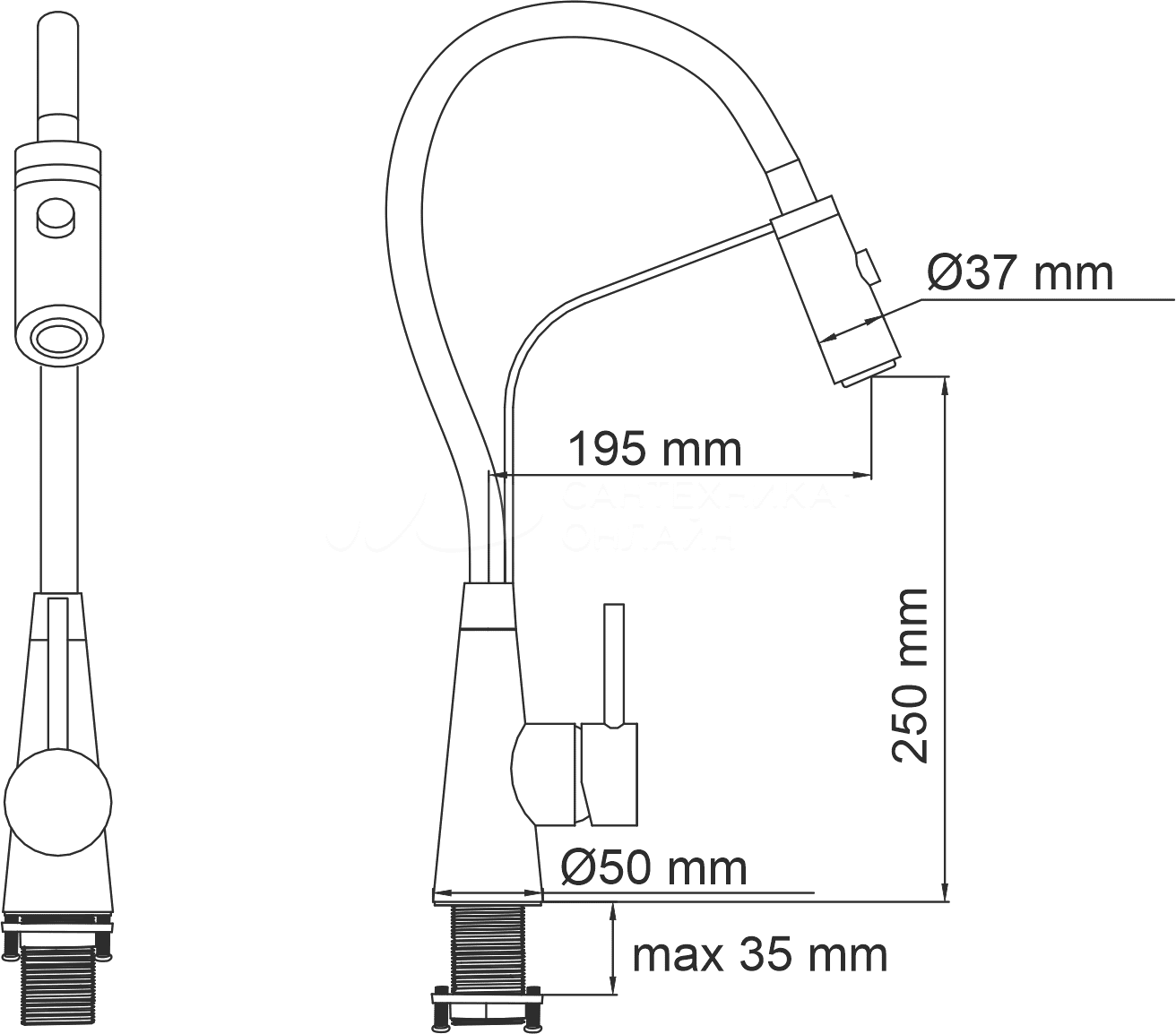 Высота излива: 25 см