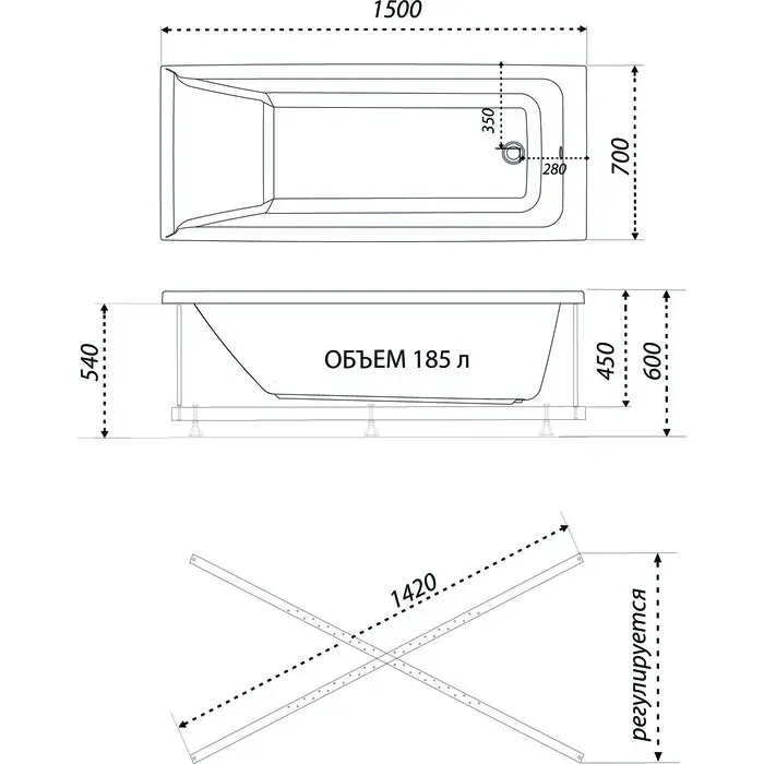 Акриловая ванна 1ACReal Тори Щ0000042930 150x70 см белый купить