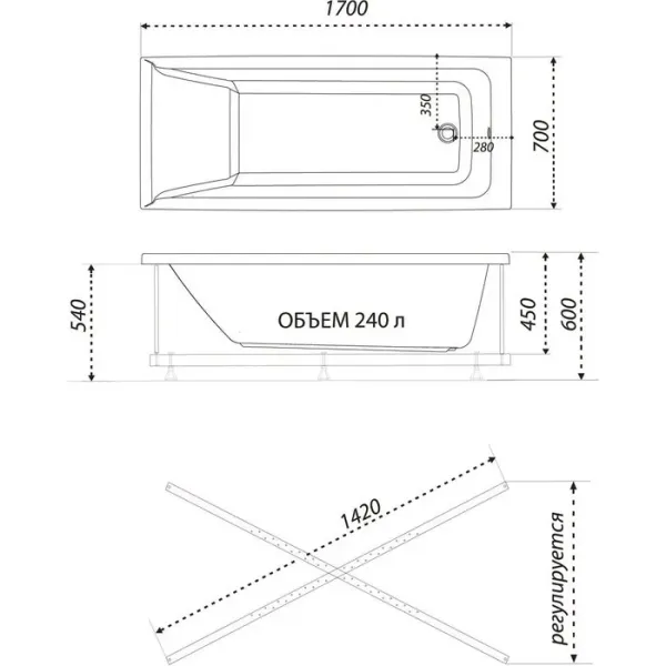 Акриловая ванна 1ACReal Тори Щ0000044551 170x70 см на Х-каркасе белый купить