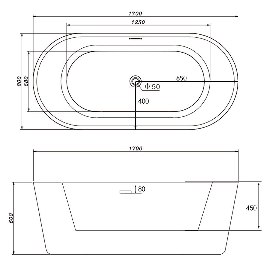Акриловая ванна ABBER AB9209 170x80x60