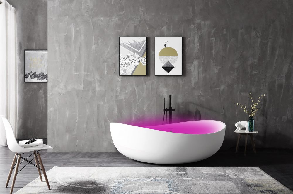 Акриловая ванна ABBER AB9239LED с хромотерапией 180x110см белый