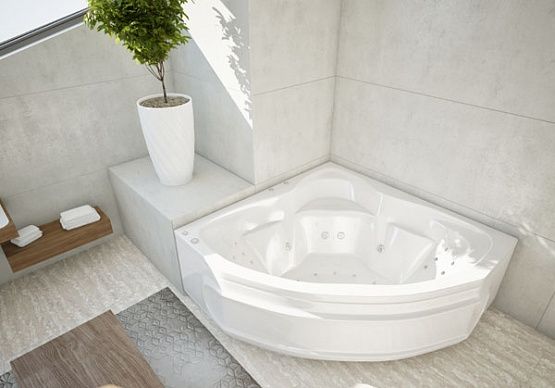 На сегодняшний день Сириус — самая большая угловая ванна в нашем ассортименте (164х164 см). Если Вы хотите сэкономить пространство ванной комнаты, не теряя в размерах ванны, — это, несомненно, Ваш выбор. На бортах ванны для удобства можно разместить ванные принадлежности. Также можете принимать гидромассажные процедуры для ног, сидя на специальном сиденье в углу ванны.