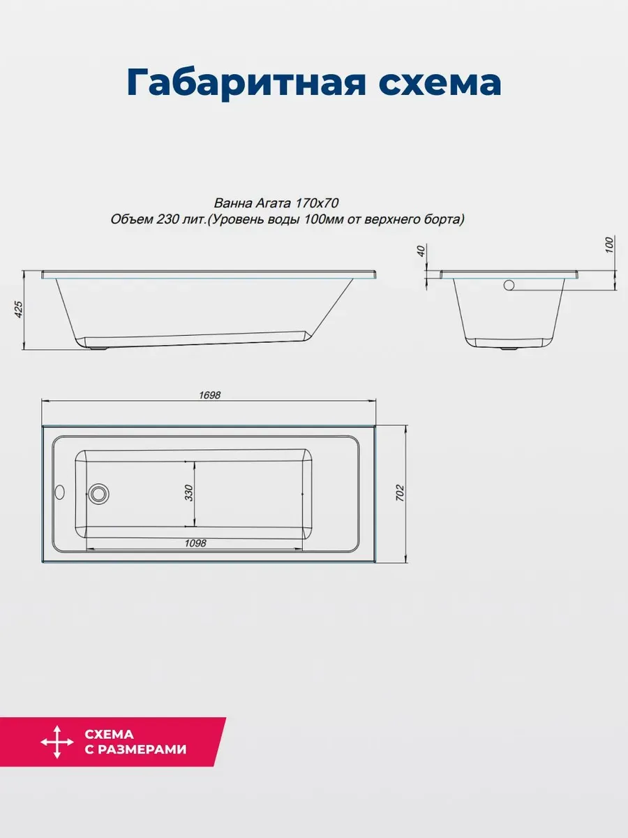 Акриловая ванна Aquanet Agata 365869 170x70 см с каркасом и фронтальной панелью купить