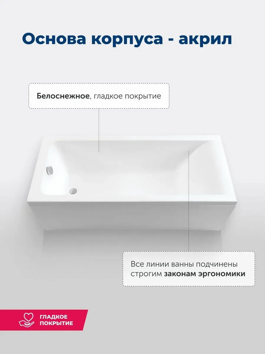 Акриловая ванна Aquanet создана с учетом растущего спроса на ванны простой прямоугольной формы в популярных размерах. Это модель с прямыми бортами и пологой спинкой, где соблюден идеальный угол для комфортного нахождения в ванне. Спинка плавно перетекает в бортик, поэтому релакс гарантирован даже без использования подголовника. Все линии ванны подчинены строгим законам эргономики. Чаша в этой ванне устроена таким образом, что для обозначенных размеров в ней достигнут максимально возможный внутренний объем, и это при комфортной глубине от слива ванны до борта. Ванна рассчитана на нагрузку свыше 300 кг, так что даже крепкий мужчина сможет без опаски находиться в ней. Двойной слой армирования обеспечивает надежность чаши, а закладные из МДФ-плит в местах наибольшей нагрузки усиливают эффект.