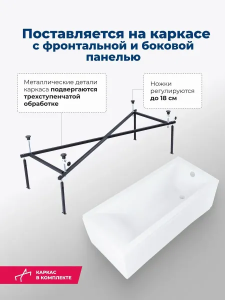 Ванна уже установлена на жесткий сварной каркас из металлического профиля. Металлические детали каркаса подвергаются трехступенчатой обработке, когда сначала профильная труба проходит абразивную зачистку на специальном станке, после чего готовые детали обрабатывают каустической содой, и, просушив, покрывают с помощью электростатического распылителя молотковой краской по металлу. Это гарантирует равномерность окрашивания и стойкость покрытия.