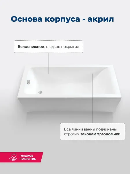 Акриловая ванна Aquanet Bright 165x70 создана с учетом растущего спроса на ванны простой прямоугольной формы в популярных размерах. Это модель с прямыми бортами и пологой спинкой, где соблюден идеальный угол для комфортного нахождения в ванне. Спинка плавно перетекает в бортик, поэтому релакс гарантирован даже без использования подголовника. Все линии ванны подчинены строгим законам эргономики. В современных условиях ширина ванны 70 см при длине 165 см - это наиболее востребованные габариты, так как прекрасно вписываются в стандартную планировку современных ванных комнат. Чаша в этой ванне устроена таким образом, что для обозначенных размеров в ней достигнут максимально возможный внутренний объем, а именно 175 литров, и это при комфортной глубине в 412 мм от слива ванны до борта. Ванна рассчитана на нагрузку свыше 300 кг, так что даже крепкий мужчина сможет без опаски находиться в ней. Двойной слой армирования обеспечивает надежность чаши, а закладные из МДФ-плит в местах наибольшей нагрузки усиливают эффект.