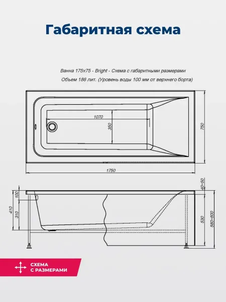 Акриловая ванна Aquanet Bright 347870 175x75 см с каркасом с боковой и фронтальной панелями купить