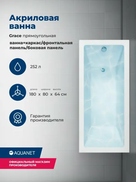 Акриловая ванна Aquanet Grace 347879 180x80 см с каркасом с фронтальной и боковой панелями купить