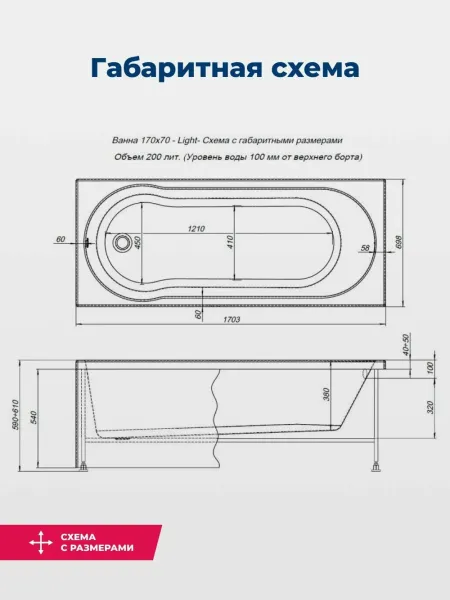 Акриловая ванна Aquanet Light 347880 170x70 см с каркасом с боковой и фронтальной панелями