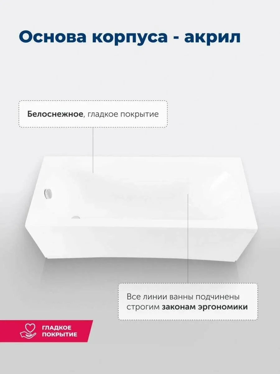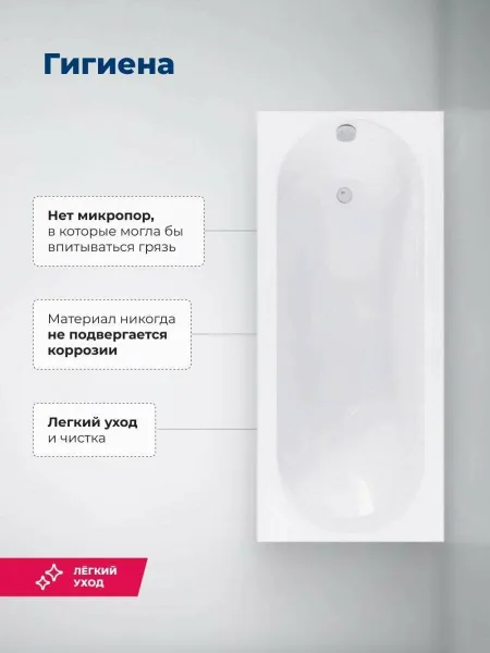 Овальная чаша объемом 150 л со стандартным сливом дополнена расположенной под углом спинкой, переходящей в прямые широкие бортики. Глубина составляет 44,7 см. Выверенная до мелочей эргономика обеспечивает комфортное принятие водных процедур, позволяет держать под рукой необходимые гигиенические принадлежности. Устойчивость придает прочный металлический каркас, оптимальную высоту которого можно подобрать за счет регулируемых ножек.