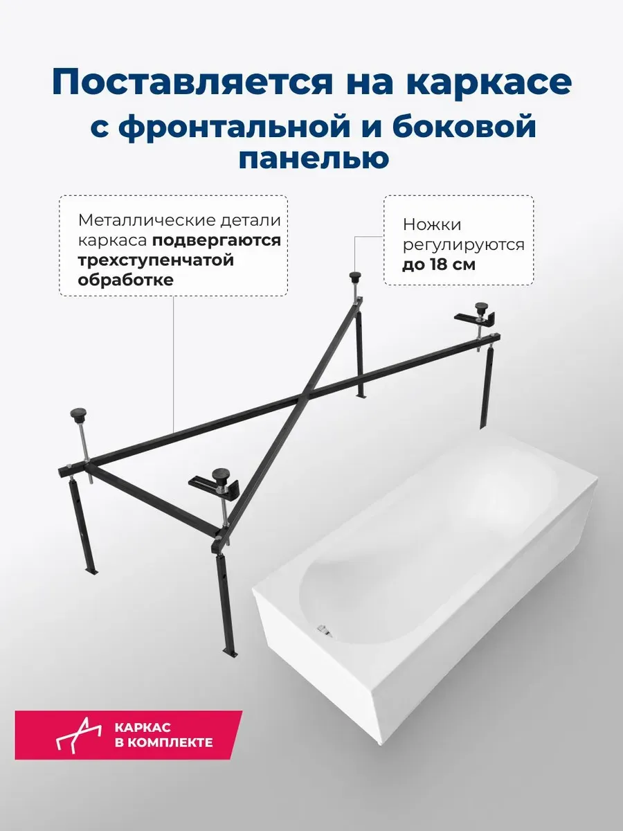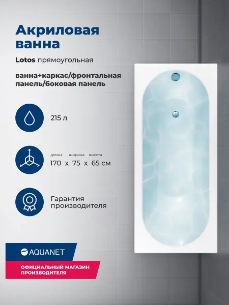 Акриловая ванна Aquanet Lotos 347883 170x75 см с каркасом с боковой и фронтальной панелями купить