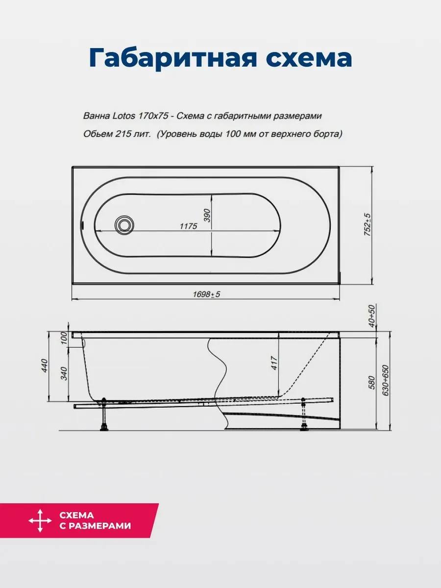 Овальная чаша объемом 215 л со стандартным сливом дополнена расположенной под углом спинкой, переходящей в прямые широкие бортики. Глубина составляет 44 см. Выверенная до мелочей эргономика обеспечивает комфортное принятие водных процедур, позволяет держать под рукой необходимые гигиенические принадлежности. Устойчивость придает прочный металлический каркас, оптимальную высоту которого можно подобрать за счет регулируемых ножек.