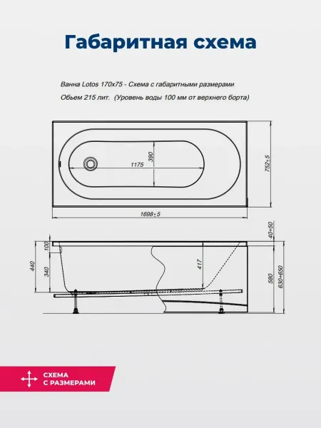 Акриловая ванна Aquanet Lotos 347883 170x75 см с каркасом с боковой и фронтальной панелями