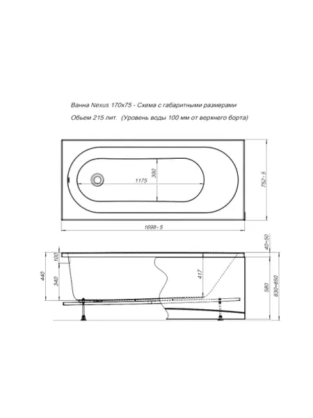 Размеры: ДхШ: 170x75 см Объем: 215 л Толщина листа: 0.5 см Особенности: 362567 Под... Подробнее