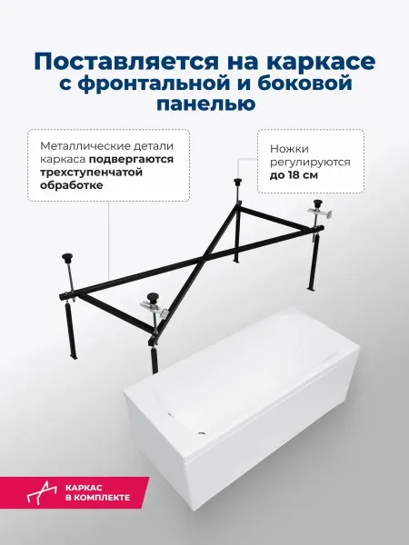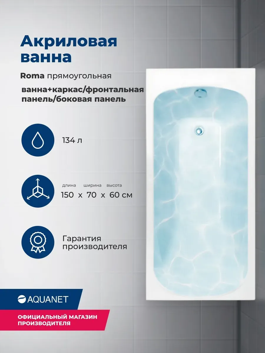 Акриловая ванна Aquanet Roma 347889 150x70 см с каркасом с фронтальной и боковой панелями купить