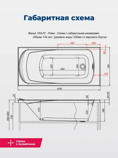 С вместимостью 134 литра и удобными размерами 1500x700 мм, ванна Aquanet ROMA предлагает простор и комфорт для полного расслабления. Антискользящее покрытие на днище и продуманный подголовник создают условия для безопасного и приятного купания. Не забудьте дополнить комплект рекомендованным сливом-переливом Aquanet с хромированным покрытием, чтобы обеспечить безупречное функционирование вашей новой ванны.