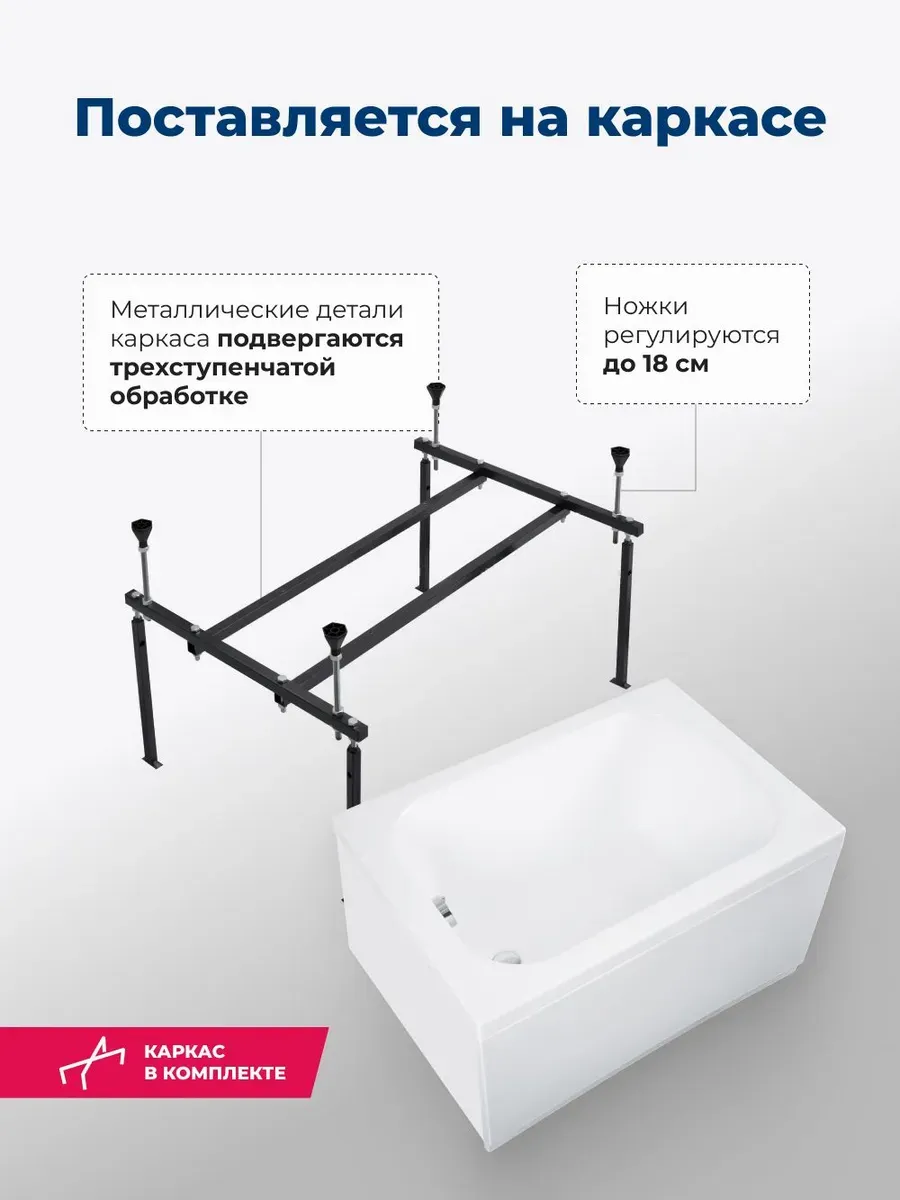 Акриловая ванна Aquanet Seed 347891 100x70 см с каркасом с фронтальной и боковой панелями купить