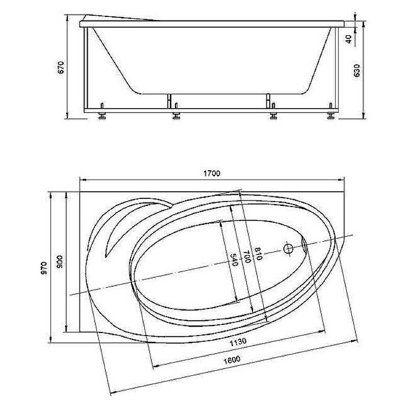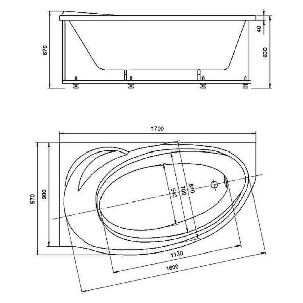 • Ванна устанавливается на каркас, который поставляется в комплекте