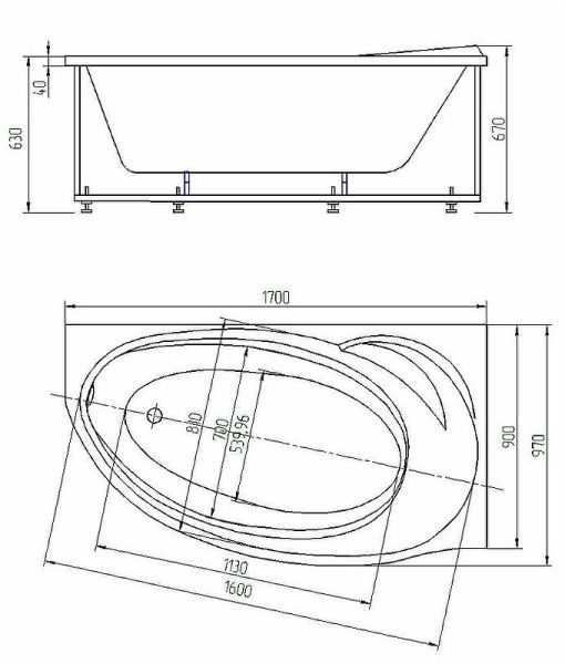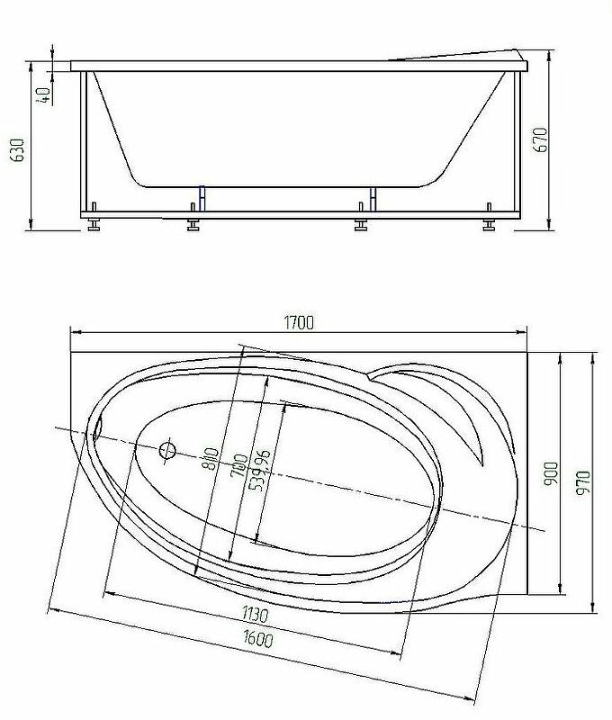 • Ванна устанавливается на каркас, который поставляется в комплекте
