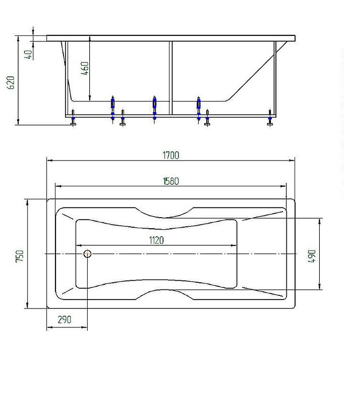- Ванна устанавливается на каркас, который поставляется в комплекте