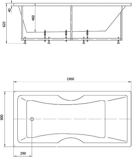 • Ванна устанавливается на каркас, который поставляется в комплекте