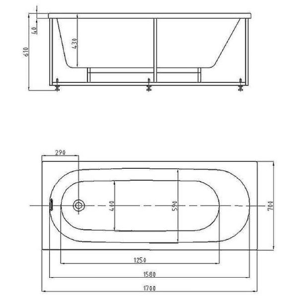 Акриловая ванна Aquatek Оберон OBR170-0000165 170х70 см