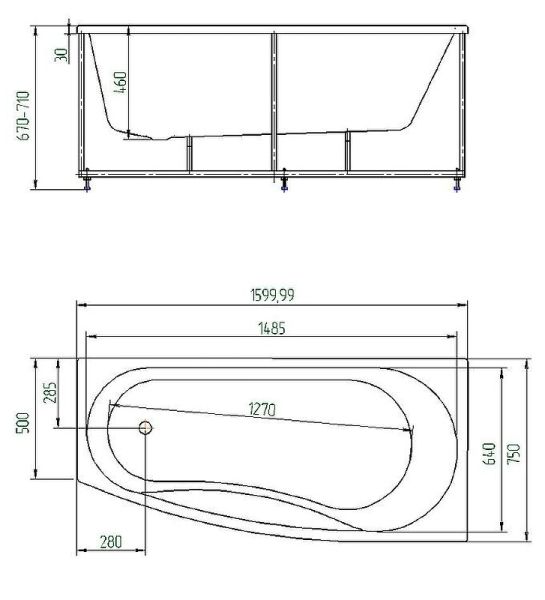 • Ванна устанавливается на каркас, который поставляется в комплекте