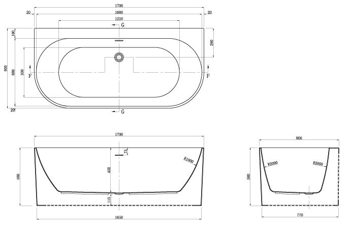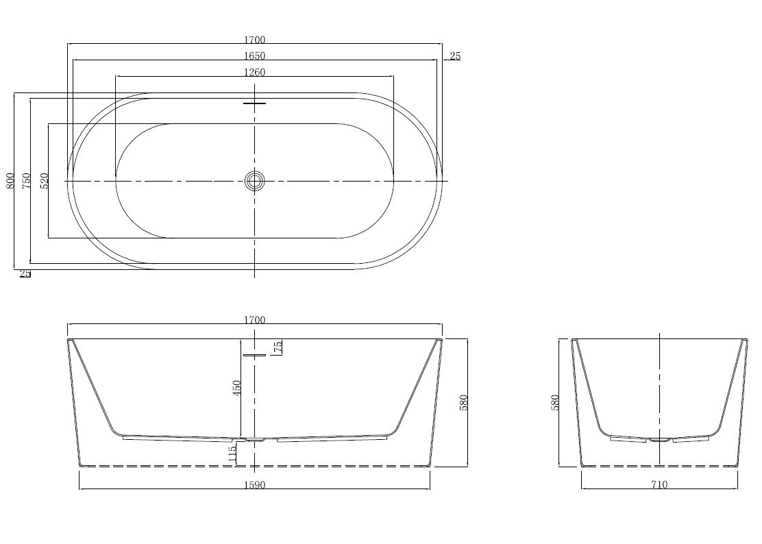 Aкриловая ванна Azario BRADFORD BRA17080 пристенная 1700х800х580