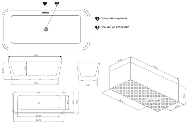 Длина, см:170Слив-перелив:в комплектеСерия:WALESAОснащение:сифон#слив-переливШирина, см:73Длина (Глубина), см:170Высота, см:56Глубина, см:43