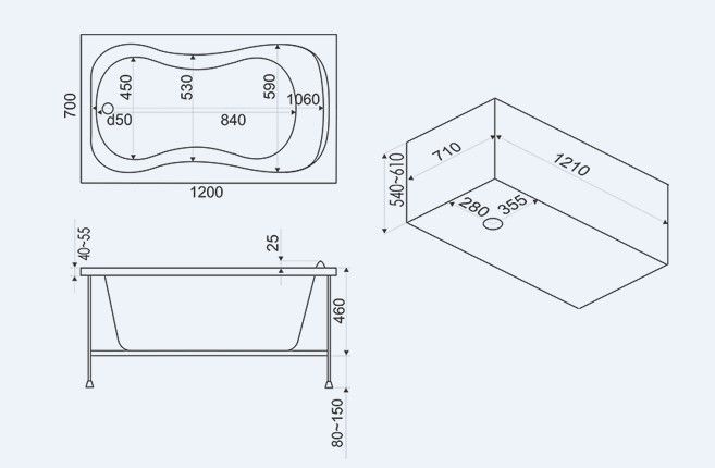 Акриловая ванна Bas Кемерон 120x70 см без гидромассажа