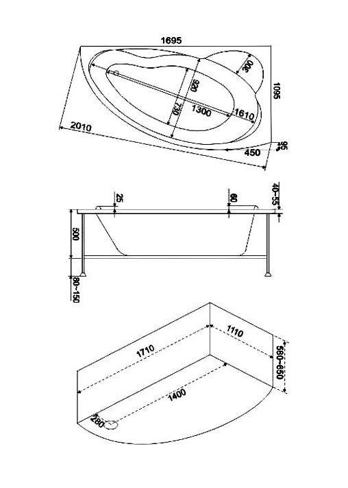 Состав поставки: Ванна, Каркас