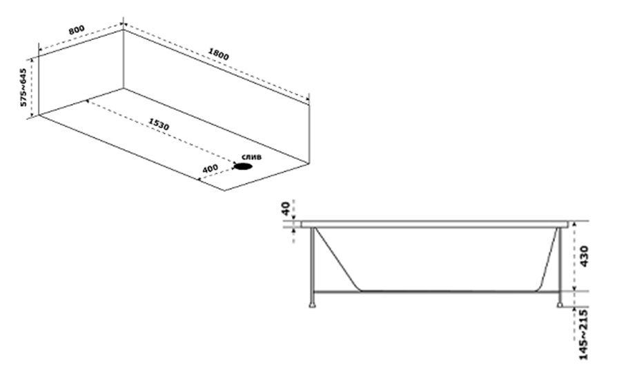Акриловая ванна Bas Нирвана 180х80 без гидромассажа