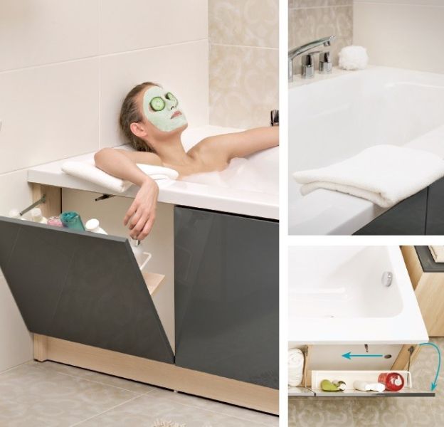 - Для каждой модели выпускается специально разработанная фронтальная панель с тремя скрытыми модульными шкафчиками. Новая система хранения – это инновационный подход к планированию пространства в ванной комнате. Именно такой подход к использованию пространства даст Вам возможность хранить максимум предметов в минимальном пространстве.