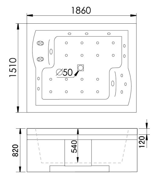Акриловая ванна Gemy G9052 II K L 186x151x82