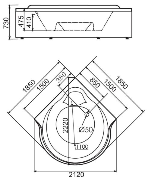 Ванна с гидромассажем Gemy G9088 OГабариты:185*185*73 смТехнические характеристики и описание ванны: