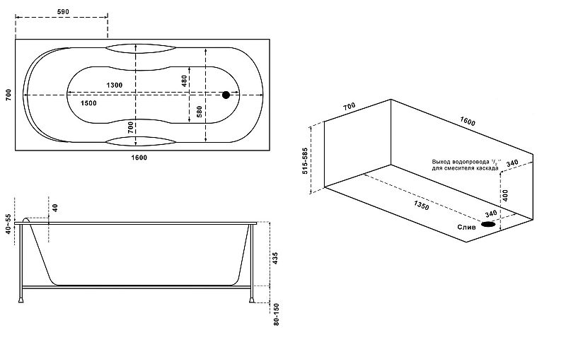 Акриловая ванна Relisan Eco Plus Мега 160x70 Гл000015091 без гидромассажа купить