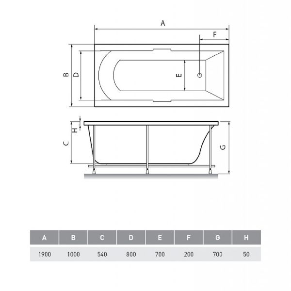 Акриловая ванна Relisan Eco Plus Темза 190х100 Гл000025013 без гидромассажа