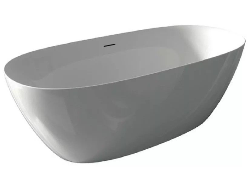 Отдельно стоящая овальная, глянцевая белая акриловая ванна RIHO Alpha 170х80 с тонкими двойными стенками, со встроенным переливом.