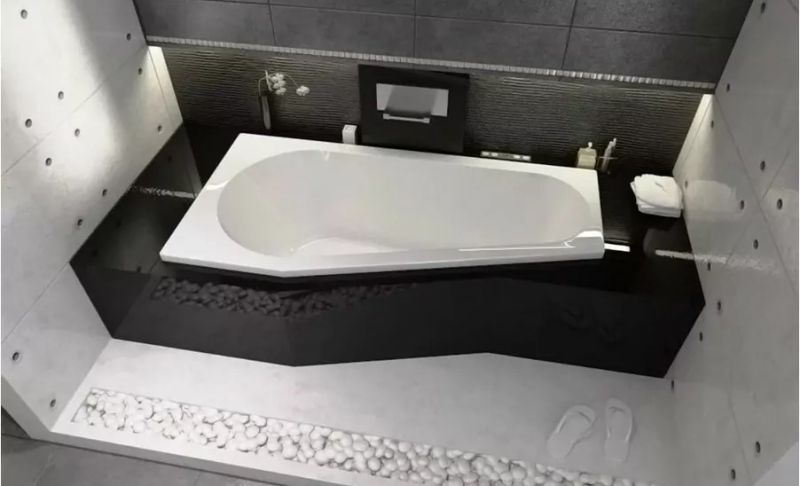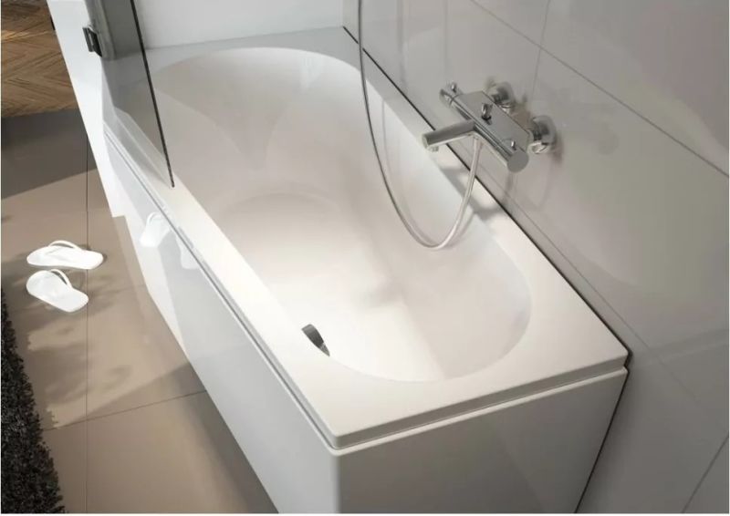 Материал непористый и гладкий, поэтому на нём не остаются известковый налёт и бактерии, поверхность ванны легко очищается.