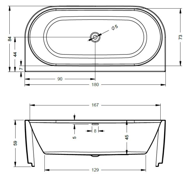 Акриловая ванна Riho Desire Back2Wall Glossy Sparkle System Fall B089013005 180x84см с аэромассажем заполнение через перелив белый