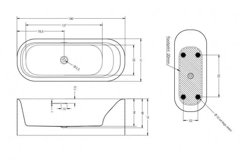 Акриловая ванна Riho Devotion Free Glossy Fall B095002005 180х71см заполнение через перелив белый