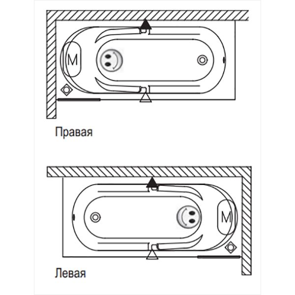 Конструкция ванны симметрична, поэтому может быть установлена в правом и левом углу.