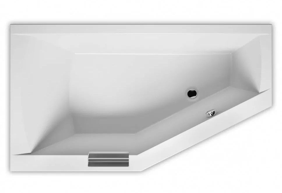 ?Асимметричная ванна RIHO Geta 160x90 L Plug & Play из глянцевого белого акрила, со скошенными краями и встроенной хромированной ручкой представляет собой полностью собранную на заводе конструкцию.