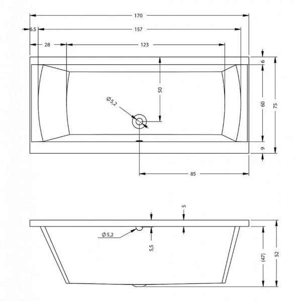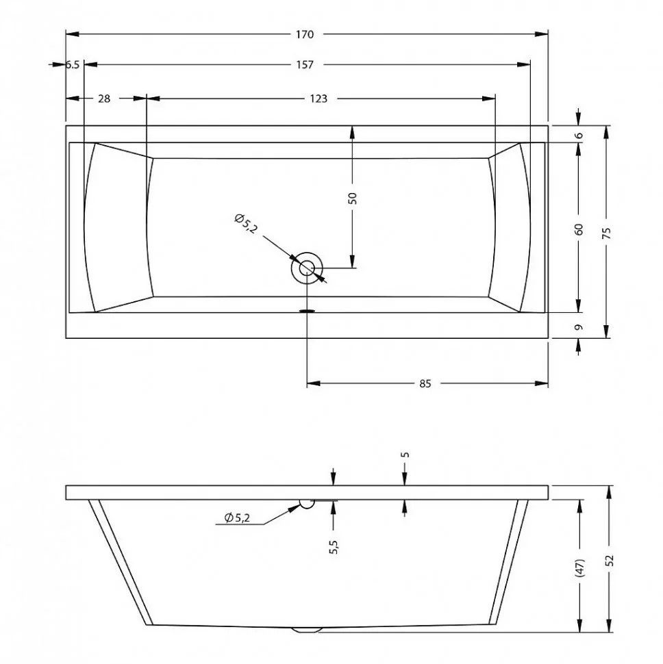 Прямоугольная акриловая ванна RIHO JULIA 170x75 изготовлена из высококачественного листа акрила глянцевого белого цвета
