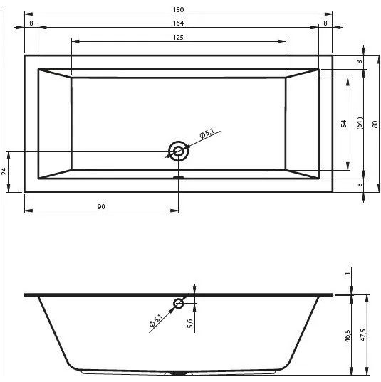 Слив-перелив расположен по центру ванны, спинки - симметричные.