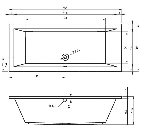 Акриловая ванна RIHO Lusso 190x80 изготовлена из высококачественного листа акрила белого цвета, полностью армирована.