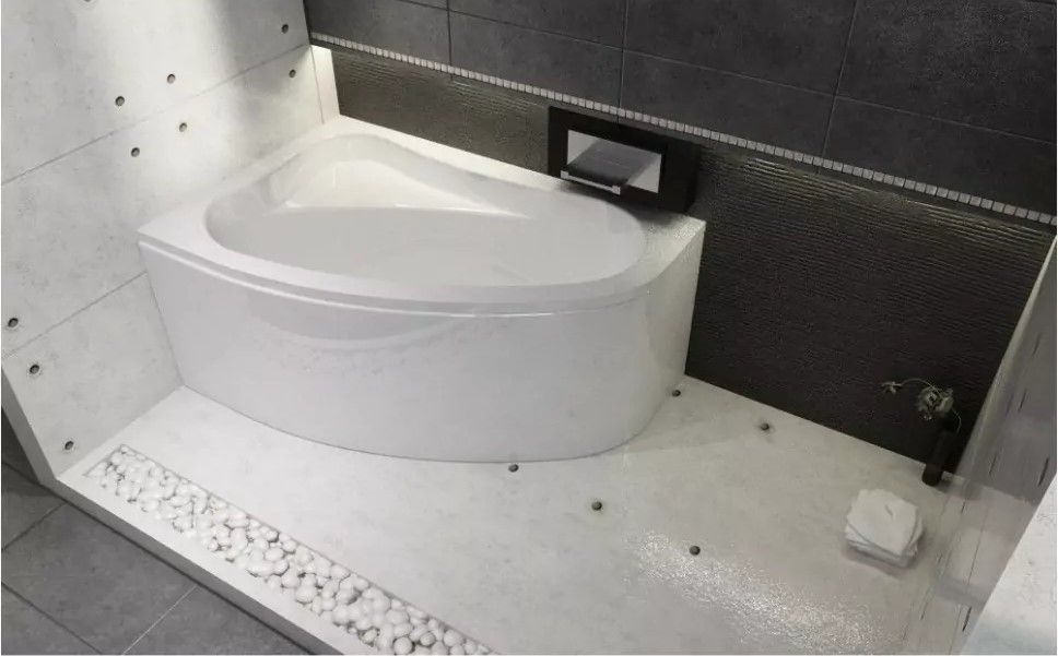 Асимметричная акриловая ванна RIHO Lyra 140x90R изготовлена из высококачественного листа акрила глянцевого белого цвета.