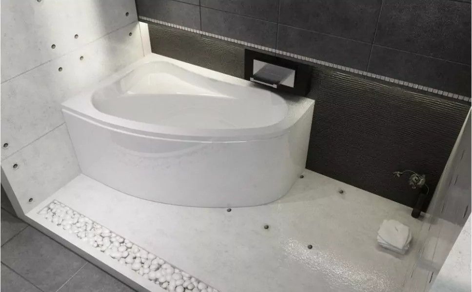 Асимметричная акриловая ванна RIHO Lyra 153x100R изготовлена из высококачественного листа акрила глянцевого белого цвета.