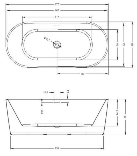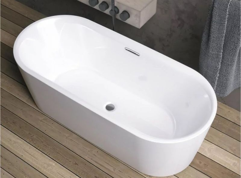 Отдельно стоящая белая глянцевая ванна RIHO Modesty 170х76 достойна своего названия: ванна сочетает в себе роскошный внешний вид с комфортом и удобством для пользователя, не будучи эксцентричной. Это ванна овальной формы с красивым тонким бортиком.
